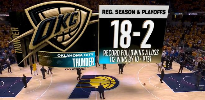 ⚡抢七不慌?雷霆今年季后赛输球后战绩18胜2负,12场赢10+